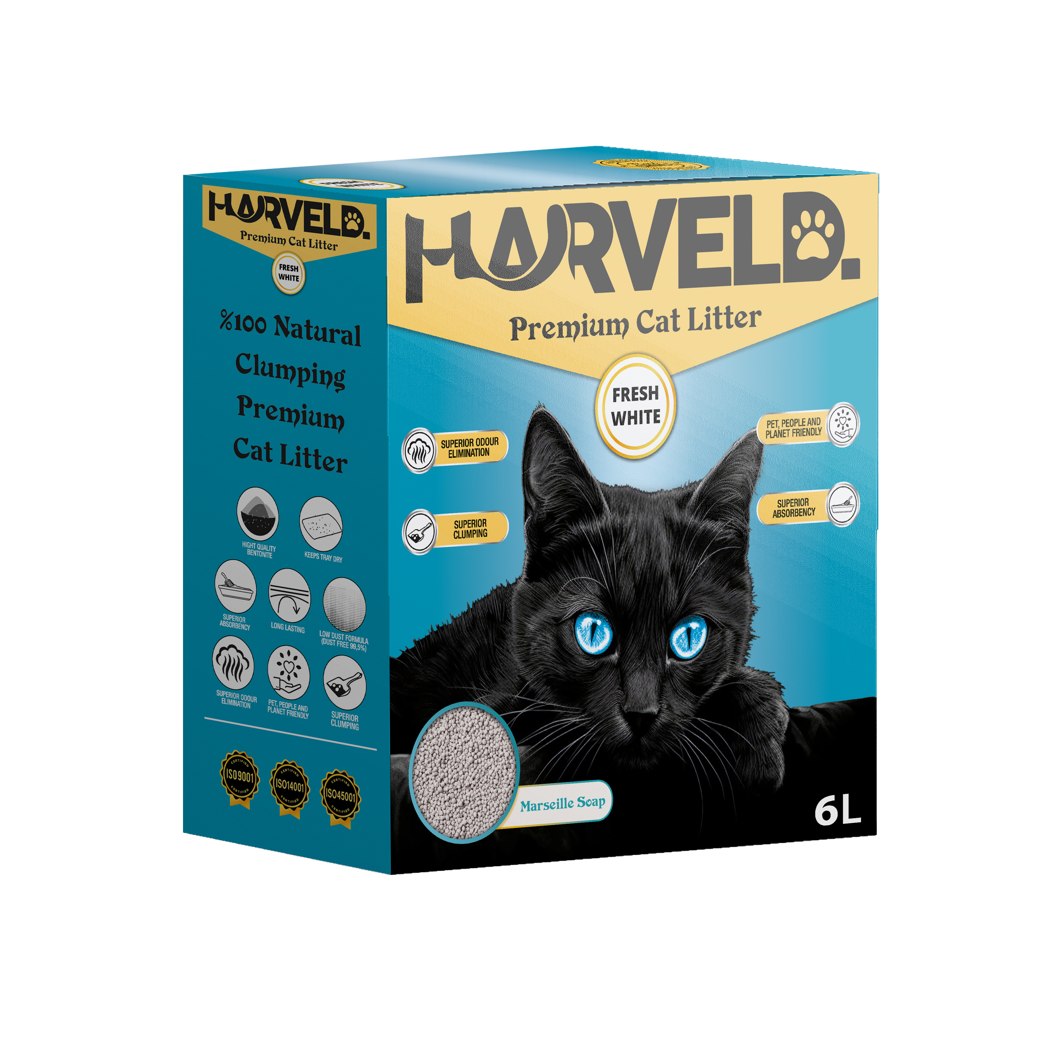 Harveld Fresh White Marseille 6L is a premium bentonite cat litter specially developed to ensure your cat’s hygiene and comfort. Made from high-quality bentonite material, it provides the healthiest and cleanest solution for your cat’s toileting needs.