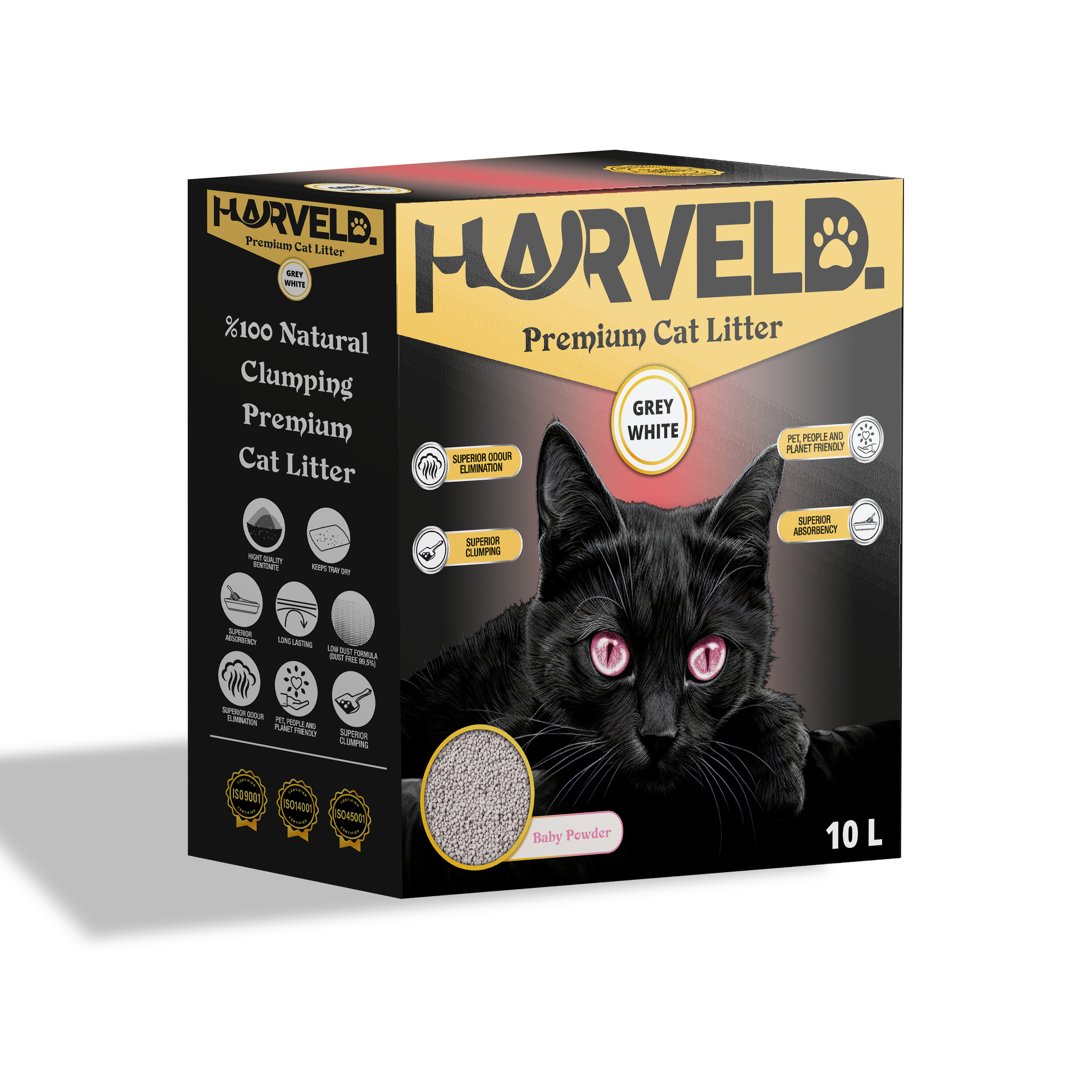 Harveld Grey White Baby Powder 10L is a premium bentonite cat litter formulated to provide a hygienic and comfortable toileting experience for your cat. Infused with a baby powder scent, it enhances freshness while maintaining a clean environment.