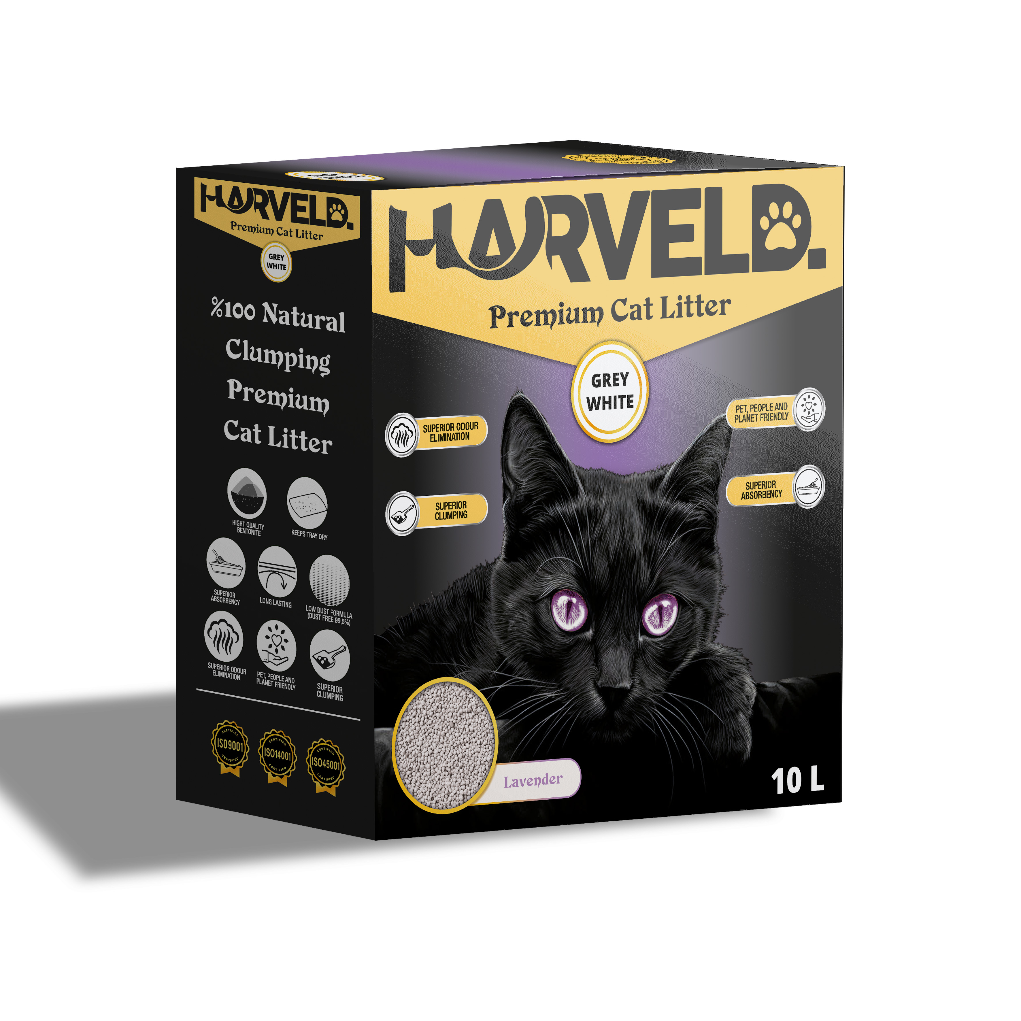 Harveld Grey White Lavender 10L is a premium bentonite cat litter formulated to provide the most hygienic and comfortable toileting experience for your cat. With its high absorbency and pleasant lavender scent, it helps keep your home clean and fresh.